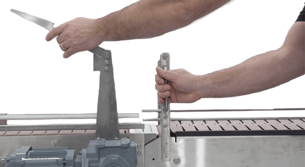 You shouldn’t need to shut down your packaging line in order to install new equipment in a hard to reach section or to quickly reach a jam. Downtime is costly and should never be accepted. Kraken Automation’s retractable conveyor belt solves this issue, as workers can simply retract the conveyor to open up the line for new equipment or material to pass through. Opening up the conveyor can create a passage for fork trucks, carts, and personnel, depending on how large you want to make the conveyor gate. Eliminate costly downtime and maximize your conveyor line’s production with a Kraken Retractable Conveyor Belt System.